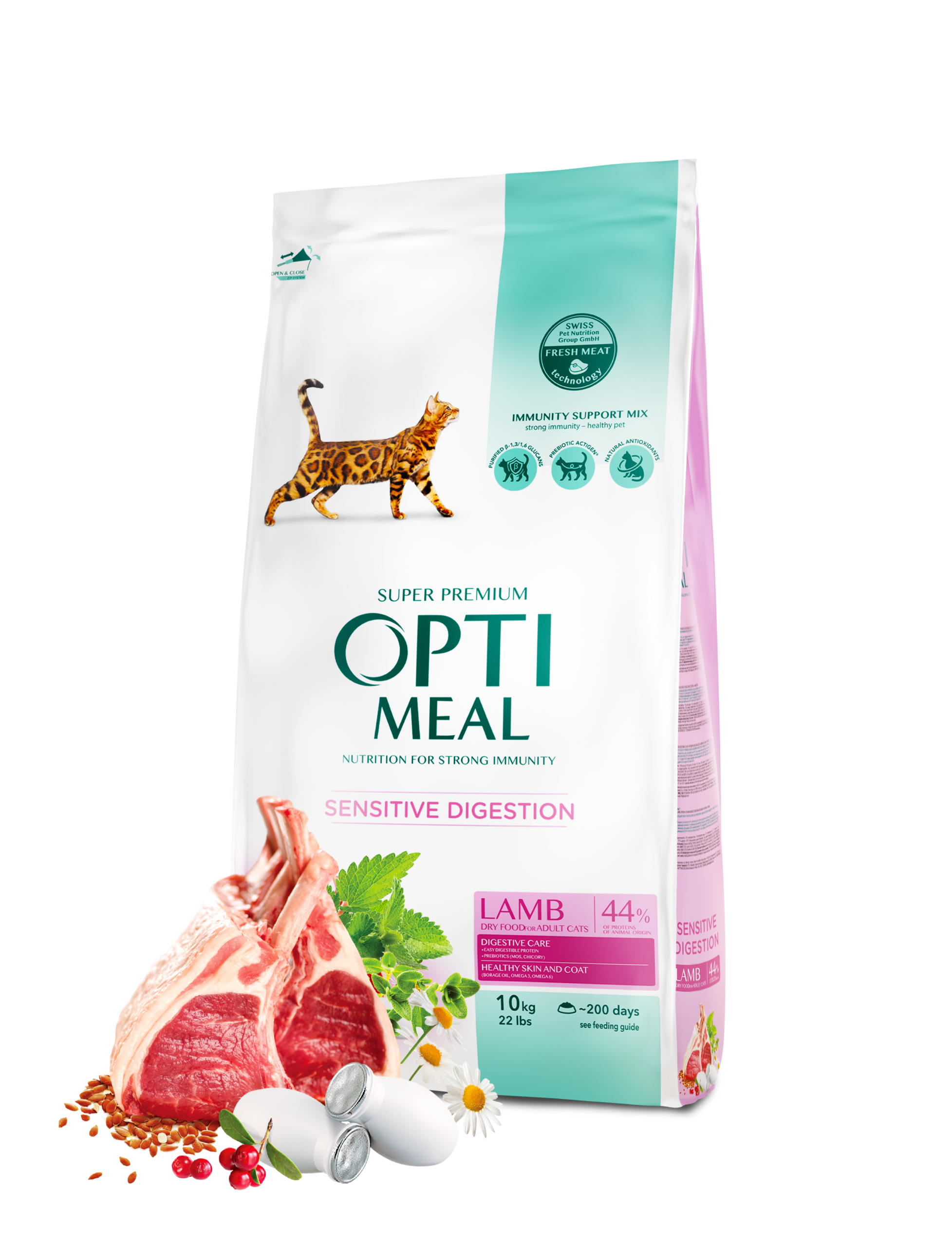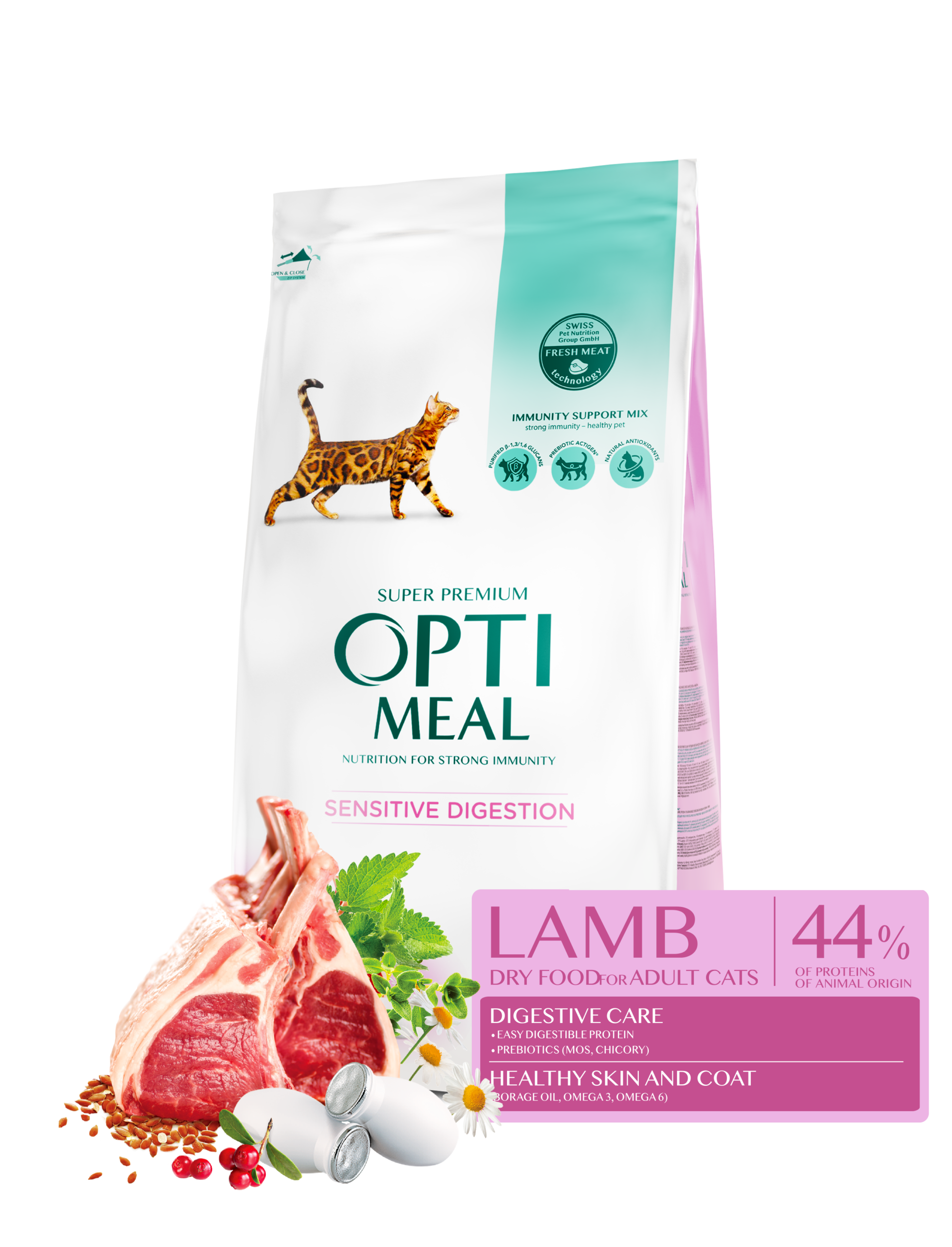 A super-premium dry food for adult cats with sensitive digestion, featuring a “Lamb” recipe. This specialized “Digestive Care” formula is enriched with easy digestible protein and prebiotics (MOS and Chicory) for optimal gut health. It includes the “Immunity Support Mix” for strong natural defenses and contains 44% proteins of animal origin. (10kg Economy Pack – Ideal for multi-cat households).