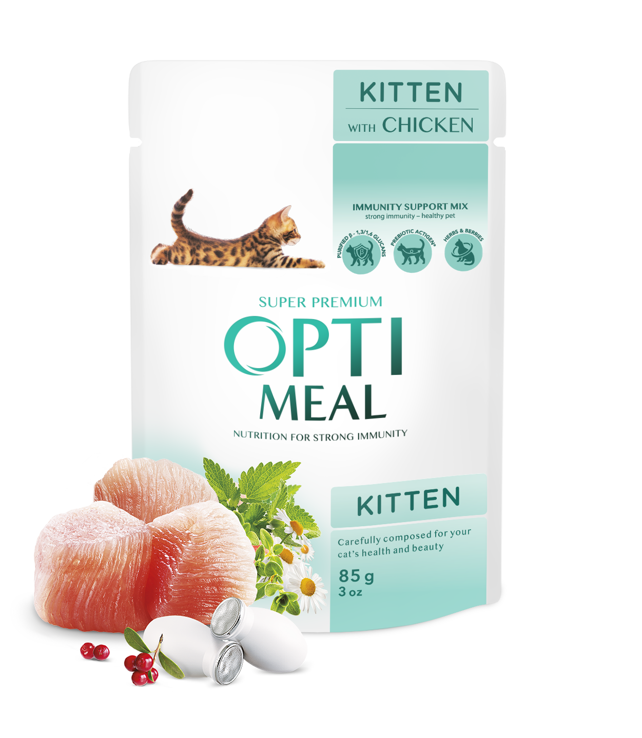 Optimeal Super Premium Kitten with Chicken is a complete and balanced wet food specially formulated for growing kittens.