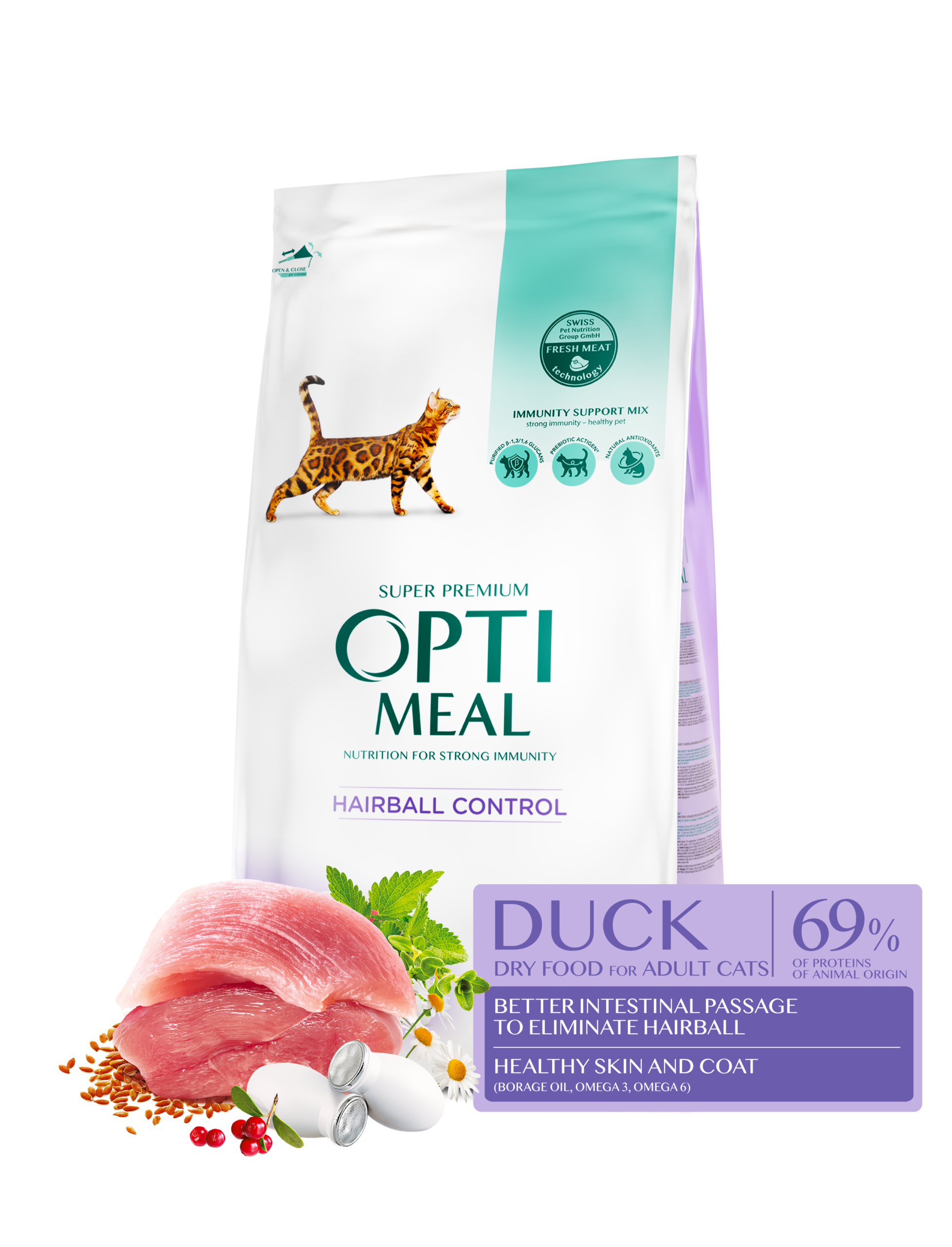 مدعّم بمزيج دعم المناعة (Immunity Support Mix) لتعزيز الدفاعات الطبيعية، ويحتوي على 44٪ بروتين من مصادر حيوانية لدعم التغذية المتوازنة والطاقة اليومية.