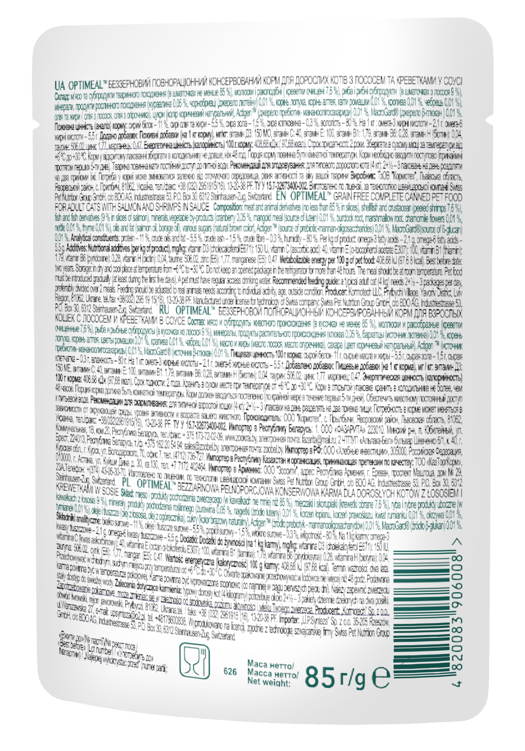 2. تفاصيل المنتج: أوبتيمال سوبر بريميوم “السلمون والروبيان في المرق” هو طعام رطب كامل ومتوازن مصمم خصيصاً للقطط البالغة. مصنوع من سلمون عالي الجودة وقطع روبيان كاملة، توفر هذه التركيبة بروتيناً حيوانياً سهل الهضم لدعم العضلات القوية ومستويات الطاقة.